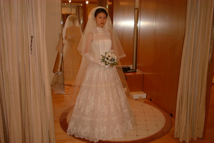 似合うかどうかと言えば、似合っているかもしれないけど、ベージュが入っているのがちょっと気になる・・・ウエディングドレスはやっぱ白でしょ!