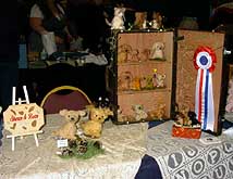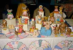 | 今日はいよいよメインイベント、ベアショーの初日!!日本と違って搬入が当日の朝なので 朝がとっても早い。眠い目をこすりながらホテルを出て7時前には会場に着いた。まず、受付を 済ませ自分の ブースを探す。今回peaちゃんと私は半ブースずつ申し込んでたのでお隣 (1テーブルを2人でシェア)、リンダさんの細やかな心遣いにはいつもすごいなと尊敬& 感謝しながら準備を始める。 いつも時間のかかる私も今回は作品が少ないこともあって結構早めに終わった。 peaちゃんも同じくらいに準備が終わったので2人でブースの写真撮影をして、会場を見て 回ることに☆ |