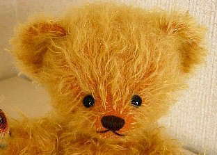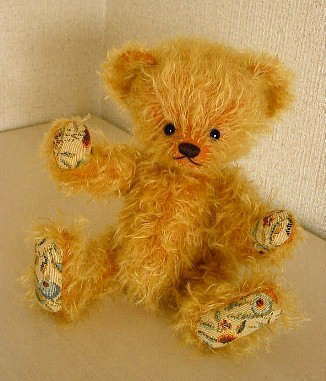 このベアは明るいダークバックモヘア(ゴールドonオレンジ)を