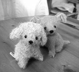 このワンコたちは最近リクエストが多かった 『今までのワンコの小さい方よりもう一回り小さい』 ミニミニワンコです。 後ろの子はちょっと気が弱そうな子に仕上がりました。 そのぶん前の子が強そうに見えますね〜(笑) この子達は10月の個展に一緒に行きます☆