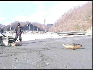 なので、車には襟裳岬でリリースする、ゼニガタアザラシのマユも