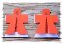 まっすぐ奥の拝殿へ向かうと、賽銭箱の横辺りに赤い紙人形がある。