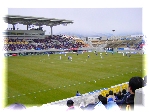 12:45、駅前から15分おきに出ているスタジアムまでの臨時バスに乗る。往復1000円。 25分の予定が渋滞で40分ほどかかり到着。バスを降りると雨・・・ 屋根のあるA席はあいにく満席だったので、仕方なくS席のチケットを2枚購入する。 2時のキックオフまで、小雨の降るなか選手たちの練習風景を眺める。 オットは寒い寒いと言ってホットコーヒーを飲み、背中にカイロを2個も貼り付けた。 ちなみに試合は2対1でフロンターレの勝利!!アウェイで勝つと喜びもひとしおである。 16:20松本駅行きのシャトルバスに乗る。雲が晴れて日が差し込んでいた。 |