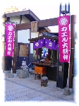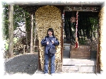 老舗?のしなの屋で借りる予定が「ひつじ」という店名に惹かれて・・・♪ 店員さんのオススメで電動アシスト付き自転車をレンタルする。1時間200円也。 初めての電動自転車(しかも新品!)に感動しつつ、大王わさび農場を目指して出発。 もらったガイドマップに従って、すばらしくのどかな田園風景の中を抜けていくと、 途中に異様に大きな下駄?を発見。とりあえず履いて記念撮影。 その近くに耳塚という地名アリ・・・な、なんなのこのおそろしぃ名前は。 |