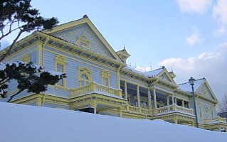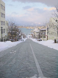 夜は函館山から夜景を見るので それまでは函館山の山すそに広がる元町と呼ばれる地区を巡る。 それにしても、2月も終わりだというのに函館はものすごく寒い。 そして地面はツルツル。 日中は溶けた雪が夜に凍り付いて、しぶとい分厚い氷になっている。 ・・・一応北海道で生まれ育った(10歳まで)くせに、ちっともうまく歩けない。 市電「函館駅前」から「末広町」へ。