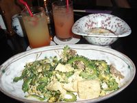 市場の2Fにある「御食事処ツバメ」にて夕食。 パイナップルジュース200円、サンピン茶400円、島ラッキョウ400円、 ゴーヤチャンプルー600円、刺身盛り合わせ700円。計3400円なり。 初めて食べた「島らっきょう」の味にハマった。
