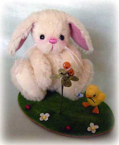 アルパカのウサギと一緒に、ニードルフェルティングで作った