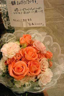会場にはとってもステキなお花やお菓子などを たくさんいただき、テーブルにに華を添えていただきました みなさん、本当にありがとうございます♪ |