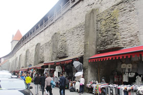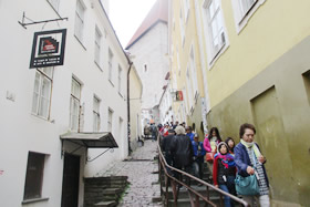 フリータイム終了後、エストニアの首都タリンに向けてバスで出発。途中風車の形をしたドライブインでトイレ休憩。有料トイレで1人0.5€(60円)。午後5時すぎにタリンに到着。ホテルに直行してチェックイン。ラディソン系の高級ホテルで、旧市街の入口ヴィル門まで徒歩で10分ほどの好立地。1・2日目のヴィリニウス、3・4日目のリガ、5・6日目のタリンと、だんだんとホテルの立地がよくなり、グレードが上がっていく。これぞ、まさに「H社マジック」。チェックインしたあと、夕食まで時間があるので、添乗員の案内でヴィル門まで歩いてみる。ホテルの近くに大きなショッピングセンターがあり、スーパーやレストラン、ブティックや書店などが軒を並べている。帰りにスーパーに立ち寄り、ミネラルウォーターを調達。