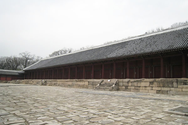 世界遺産の最後は宗廟。昌徳宮の目と鼻の先にある宗廟は、李王朝の歴代の王と王妃の位牌を祀り、祭祀を行っていた霊廟。李王朝の建物の中で最も整然とし、荘厳かつ神聖な場所であるといわれている。当時、国教とされた儒教の思想に基づき造られた宗廟は、霊廟らしく控えめな装飾で質素な印象を受けるが、どことなく訪問者を圧倒する独特の存在感のようなものが感じられる。