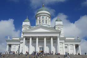 1時間10分のフライトでフィンランドのヘルシンキ空港に着陸。フィンランドは、国土の3分の2が森林で、3分の1が北極圏に属している国。サウナやキシリトールガムの発症の国としても有名。その首都ヘルシンキは、「バルト海の乙女」と呼ばれる美しい街。19世紀初頭、当時の統治者ロシア皇帝アレクサンドル1世がトゥルクよりこの地に遷都したことで栄え始める。建物や街並みにロシアとスウェーデンに統治された名残が感じられる。