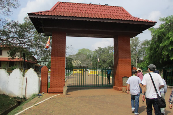 イスルムニア寺院の次は、バスでスリー・マハー菩提樹に向かう。5分ほどで大きな公園に到着。駐車場でバスを降り、園内に入ると、白い法服を着た巡礼者がスリランカ全土から集まっていた。白壁に囲われた本堂を覆うようにスリー・マハー菩提樹が繁っている。仏陀が悟りを開いたインドの菩提樹の分木をインドのサンガミッタ王女が紀元前3世紀にこの地に運び、植えたと伝えられている。現地ガイドの話では、現存するのは1本だけで、添え木に支えられて辛うじて生き延びている。