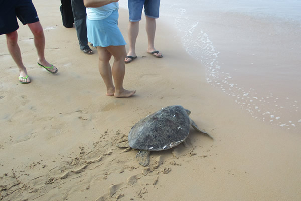 8時ホテルを出発してコロンボに向かう。バスで海岸線を1時間ほど北上したところにあるウミガメの保護センターに立ち寄る。スリランカ南部のビーチには、11月から4月にかけて5種類のウミガメが産卵のために現れる。産み落とされた卵は、ボランティアによって保護施設に運ばれ、孵化したあと、大きくなるまで育てられ、海に帰すそうだ。立ち寄った保護施設もその1つで、公的施設ではなく、民間の運営。ちょうど漁船の網に運悪くかかってしまったウミガメを海に戻す場面に遭遇。ウミガメはヨタヨタと海に向かって砂浜を歩き始めていた。