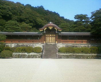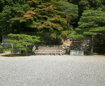 また、泉涌寺のすぐ北側の参道を登っていくと、途中から小高い山上に延びる道がありその先に御堀河天皇観音寺陵、参道を更に奥へ進んで行くと終点の所に孝明天皇後月輪東山陵があります。英照皇太后陵(後月輪東北陵)が孝明天皇陵のすぐ近くにあるようなのですが、門から先に進めないので拝見できません。余談ですが、N氏と観光に勤しんでいる中で、過去にも幾つか天皇陵を見かけた事があります。 観光していてふと感じた、我々の天皇陵に対する共通認識(そんな大それた事ではない)は、 その背後に緑の木々で覆われた山或いは丘がある(建物で覆われ拝見できない所もある)、 ……等などです。多くを拝見していないので、自信はありませんが、若し観光の際に見かけられたら、一度拝見に伺ってみては如何でしょうか。 |