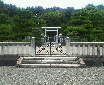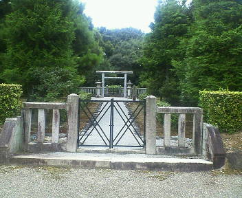 同天皇の在位時は、室町時代の初期、南北朝動乱がまだあった頃。とはいえ、南朝の衰退が極度に進んでおり、皇室財政も逼迫し、即位の儀礼も行われた形跡がないらしいのです。そのため、古くから即位説と非即位説の両説があり、正式に皇統に加わったのも大正時代の終り頃なのです。こういう事情によって、天皇の生涯と事績については現代にまで伝えられるところが少ないようなのです。私も正直、名前しか知りませんから…… ![]() また、同天皇陵の向って右手にその皇子承朝王の墓があります。この墓を見るまで、同天皇に皇子がいたなんて知りませんでした。ちなみに、写真を見比べてみるとお気付きになるかと思いますが、写真中央の小さな黒門の所にある、手前の石段の段数。天皇と皇子だと違うんですね。天皇は3段、皇子は1段上るように造られています。天皇と皇子というランクの違いが垣間見えた、そんな瞬間でした。身分高位の者ほど上位に造られる、天皇と皇子では天皇の方が位は上ですから、天皇陵が皇子の墓より高位置となるように造られたのではないでしょうか。 今回洛西の観光はここで終了しました。余談ですが、この後は友人のがるさりす氏も加わって、3人で焼肉の儀式(要するに晩飯に焼肉を食べる事)が行われました。 |
