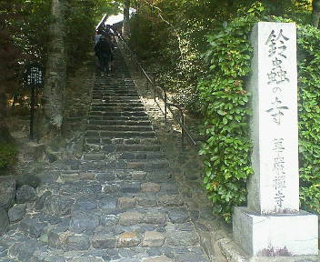 西芳寺はその通称どおり、やはり苔に覆われたその庭園が有名ですね。但し、コチラの寺は、予約参拝制をとっておられる為、自由に訪問することは叶いません。私も友人N氏もその事実を知ったのはつい最近のことです。ですから、今回も外の門構え位は見ておこうとチラ見程度で済まして次の訪問地へ向ったのでした。次の訪問地は鈴虫寺です。この呼び名も通称であり、正しくは華厳寺(けごんじ)といいます。臨済宗単立寺院、山号は妙徳山。コチラも世界遺産に指定されています。享保八年(1723)に鳳潭(ほうたん)上人が華厳宗の復興の為に創建しました。その通称どおり、寺内には一年中鈴虫が鳴いていることで有名です。 和尚さんの話によれば、本来、鈴虫は秋の季節にだけ鳴いているのです。鈴虫の寿命は僅かに百十日程、鳴くのは最後の二十日程度らしいのです。住職が鈴虫の妙音で開眼し、特殊な飼育法を研究して毎日孵化させているらしいのです。部屋内を一年中秋の気候にしているので年中鳴いているのです。通称、鈴虫寺という名称はここからきているとのこと。