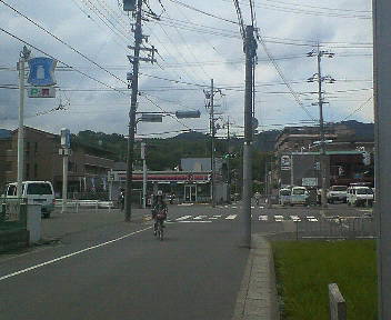 阪急そばを食べて小休憩をとった後、そのまま西へ足を進めます。途中で出くわす山田口交差点の所には、何と交差点の角にコンビニが3つもあります!見にくい写真ではありますが、左から順にローソン(左)、サークルK(中奥)、セブンイレブン(右奥)…。きっとここでは熾烈な競争が繰り広げられているのでしょうね……と軽く思いながら、足を進めます。行き先は、苔寺&鈴虫寺であります。名前くらいは聞いた事あるのではないでしょうか。