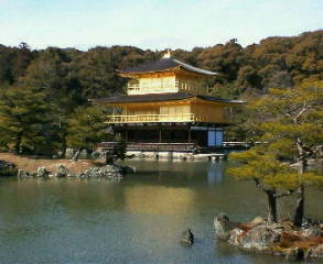 同様に、義満の孫である足利義政が造営した銀閣寺の正式名称「慈照寺」の名も、義政の法号である“慈照院殿”から取って名付けられたものです。話を戻しますが、創建時の金閣は1950(昭和二十五)年に焼失してしまい、同三十年に再建が成されました。1層は和様寝殿造で法水院(ほうすいいん)、2層は和様武家造で潮音洞(ちょうおんどう)、3層は禅宗様仏殿造で究竟頂(くっきょうちょう)と呼ばれています。御存知と思いますが、2層と3層は漆の上から純金の箔が張られてあり、屋根は椹(さわら)の薄い板を何枚も重ねた、こけら葺で、上には中国ではめでたい鳥としていわれる鳳凰が黄金に輝いています。