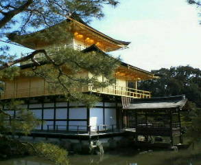 わら天神からほぼ北へ向かうと、当初目的地と設定していた「金閣寺(正しくは鹿苑寺)」に到着。金閣へ来るのはかなり久しぶりです。有名所なので、我々が到着した時、観光客がかなりいました。予想はしていましたがやはり有名所はすごいと思いました。外国人ぽい人も結構いました。文化の違いからか、かなり興味深げに見物しているようでした。「金閣寺」の名称で有名な鹿苑寺は1397(応永四)年に足利義満が造営した北山殿が起源で、彼の薨去後に禅寺となりました。通称の金閣とは舎利殿のことをいいます。寺名は義満の法号である“鹿苑院殿”から取って名付けられたものです。