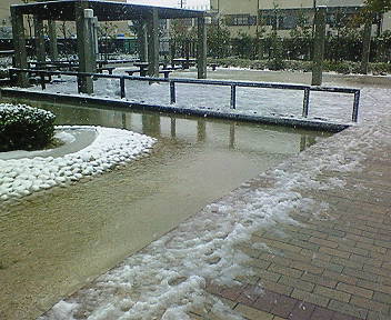 急に寒くなったなあ…と思っていたら、久々に雪が降っていました。しかも少量ですが積雪していました。大阪で雪を見るなんて本当に久々です。マンションの敷地内を見てみると、子供が作ったらしき雪だるまが3つ…。また、数人で雪合戦をしている光景を見ました。いやいやずいぶん懐かしい光景だこと…。 写真はうちのマンション内で撮った一枚です。足元の白いのが雪です。あと写真ではわかりませんが、雪も降っています。明日になったらすっかり融けてしまうでしょうな… |