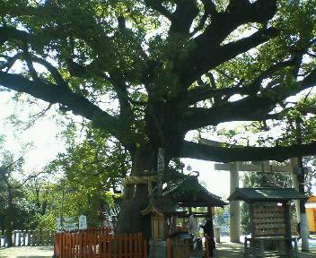 所伝によれば、神功皇后が外征からの帰りにこの百舌鳥の地で、幾万年の後まで天下泰平を祈願され、第29代欽明天皇治世時にこの地を万代(もず)と称し、神社を創建してお祀りされ、後の第77代後白河天皇治世時に京都の石清水八幡宮の別宮になったと伝えられています。境内には、樹齢約800年にもなる大楠が社前にそびえ立っており、大阪府指定天然記念物にも指定されています。