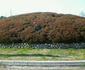 旗塚古墳からすぐ西側に目を向ければ、グワショウ坊古墳が目に入ります。直径が約58mもある大形円墳で、墳丘は二段築成と考えられています。その周りには濠がめぐらされてあり、葺石と埴輪があります。旗塚古墳の時と同じく、主な構造など詳細が不明な点はありますが、仁徳陵古墳の陪塚とされている径60mの大安寺山古墳(仁徳陵古墳の北側の円墳)に次ぐ、全国でも有数の大型円墳ですが、仁徳陵古墳や履中陵古墳の陪塚ではないようです。―――というか、何でこんな名前にしたんだろ……? ![]() 最後に訪れたのは、仁徳陵古墳の北東側にある、源右衛門山古墳です。仁徳陵古墳の倍塚の一つなのですが、周囲を金網に囲まれており、且つ住宅街の中にこじんまりとあるので、なかなかいい角度で写真が撮れない(汗)。やむなく右のような写真に……(泣) ここまで来ると、すぐ近くにJR三国ヶ丘駅があり、ふと時計を見れば時間も時間という事で、本日の古墳巡りを終了する運びとなりました。 改めて撮影した写真を見てみると、どうみてもちょっと緑の多い公園の一部にしか見えないですね……。やはり、航空写真でないと判りづらい感じですか。そりゃあ、日本の上空を飛ぶ米軍が空から見て初めてその古墳の形に気付いたらしいですからね…日本人ですら近年までその形を知る人はほとんど居なかった訳で。何でこんな形にしたんやろ……? |
