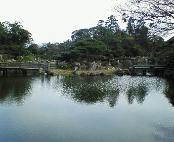 彦根城 ――譜代大名筆頭格、彦根藩三十五万石井伊家の居城。明治初期の廃城令で多くの城が破却される中、失われずに現存する数少ない城の一つ。国宝。 彦根藩は徳川四天王の一人である、初代藩主井伊直政に始まり14代藩主直憲まで約260年続く。その間国替えや城攻めに遭うことなく今日に至る。 彦根藩第4代藩主井伊直興が延宝五年(1677)に造営。近江八景を模して作られたそうです。