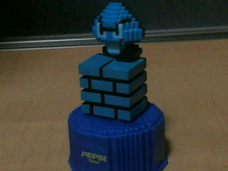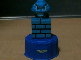 食後、そのまま帰路に着くのは味気ないということで、がるさりす氏が面白い処へ案内してくれました。その場所は奈良街道(国道24号線)を南下し、綴喜郡井手町内の国道沿いにあった「開放倉庫」なる処でした。外観は一体何なのかよくわかりませんでしたが、店内に入れば一目瞭然でした。店内には昔懐かしいファミコンのソフトや本体をはじめ、数多くの種類のソフトや本体が豊富に置かれています。他にも、攻略本・コミック・ゲームグッズ・フィギュア・CD・レコードなど、マニアにはたまらないくらい懐かしいようなモノが沢山あるのです。色々見て回ると時間を忘れてしまいます。そんな中で目に付いたのは、ファミコンでブームだったスーパーマリオブラザーズの置物(?)です。よく見ると、ペプシコーラのボトルキャップの特典として付いていたもののようです。そのモノは、ファミコンのようなデフォルメ的画質のような形をしているのです(写真参照)。もう見て下さい、このブロックの上に威厳を持って鎮座し、如何なる角度から見てもりりしく引き締まった御姿…。